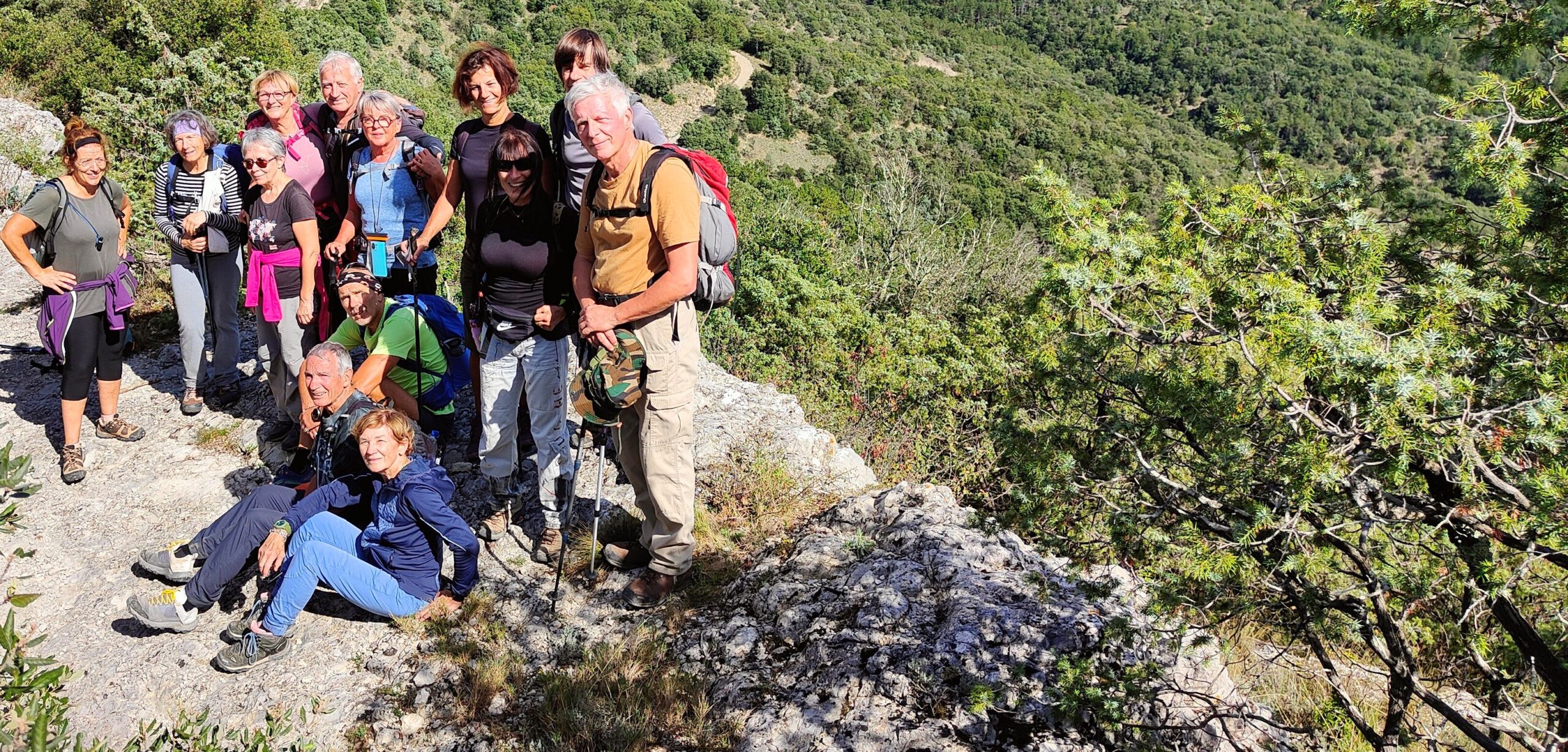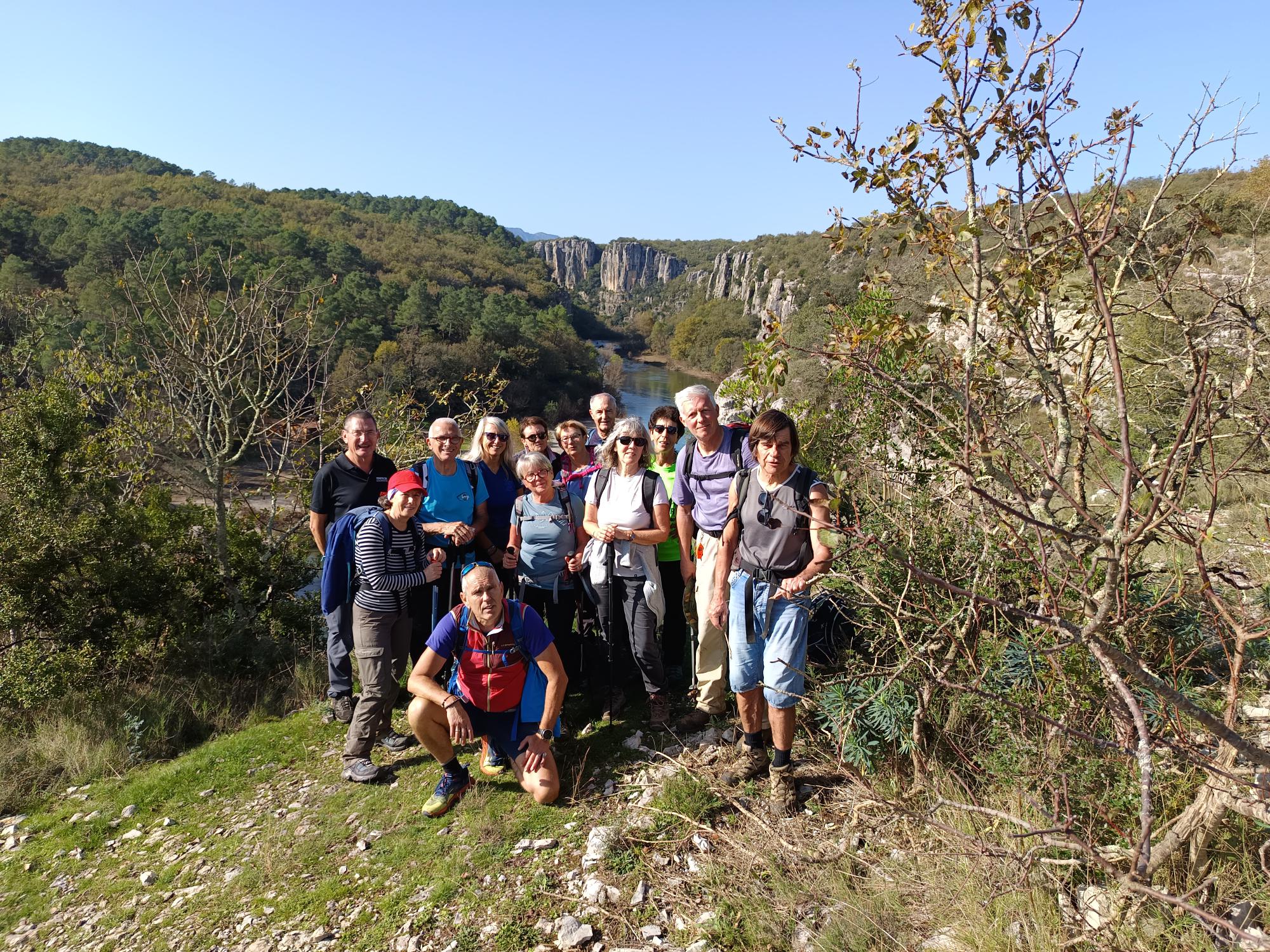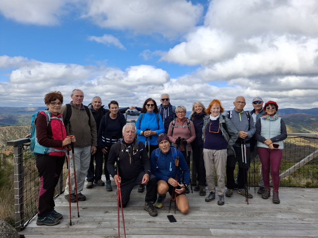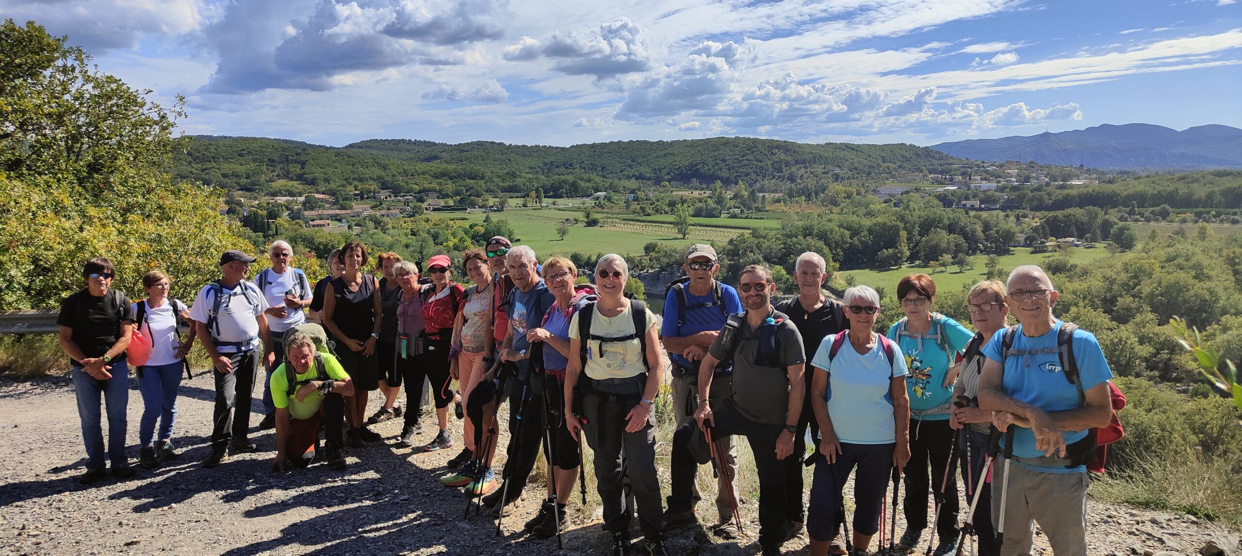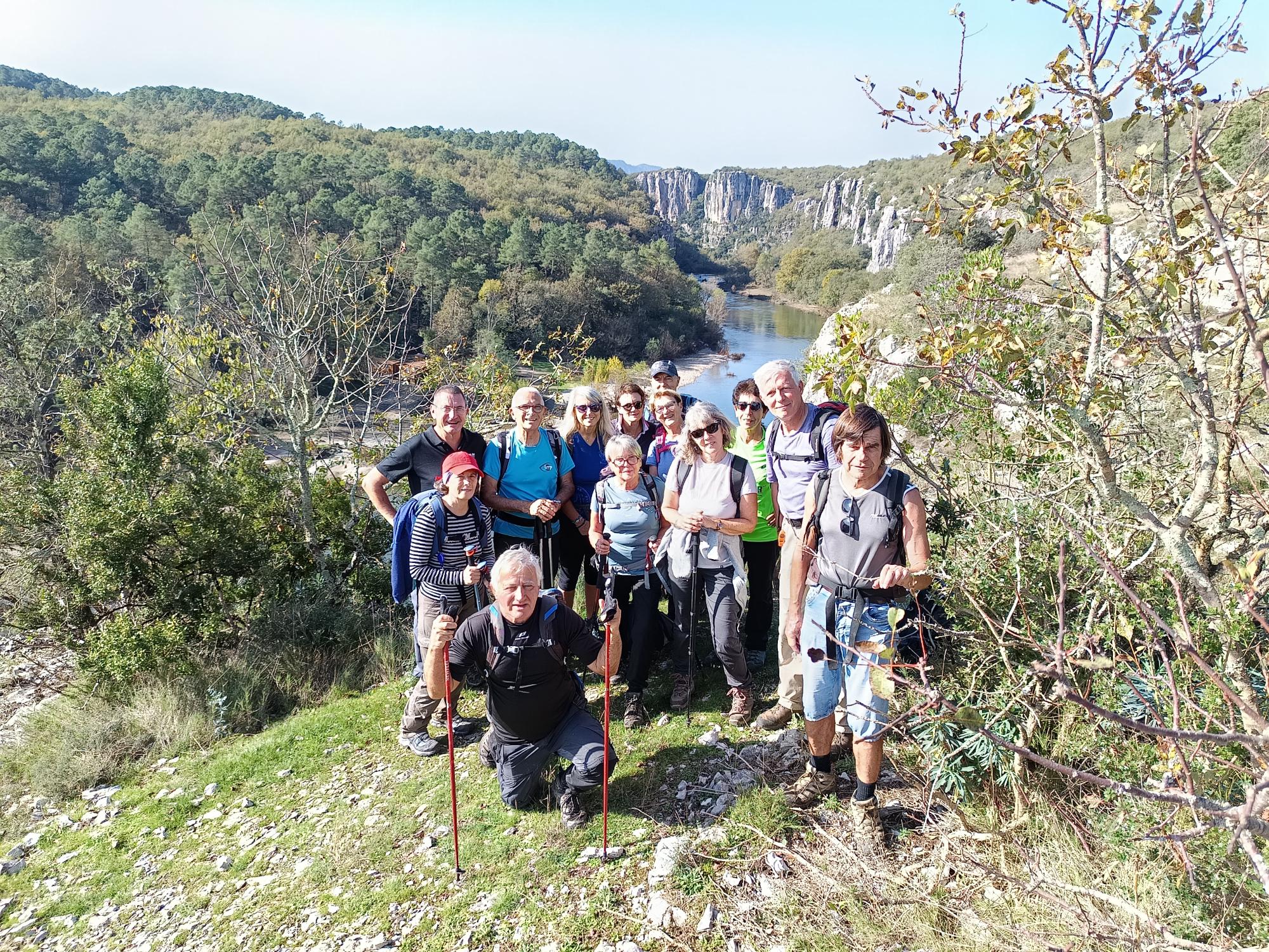 chauzon le 18/09/2024 23 participants ce jour, sous un soleil radieux, dans la bonne humeur. Belles vues sur le cirque de Gens, l’Ardèche et le Tanargue.