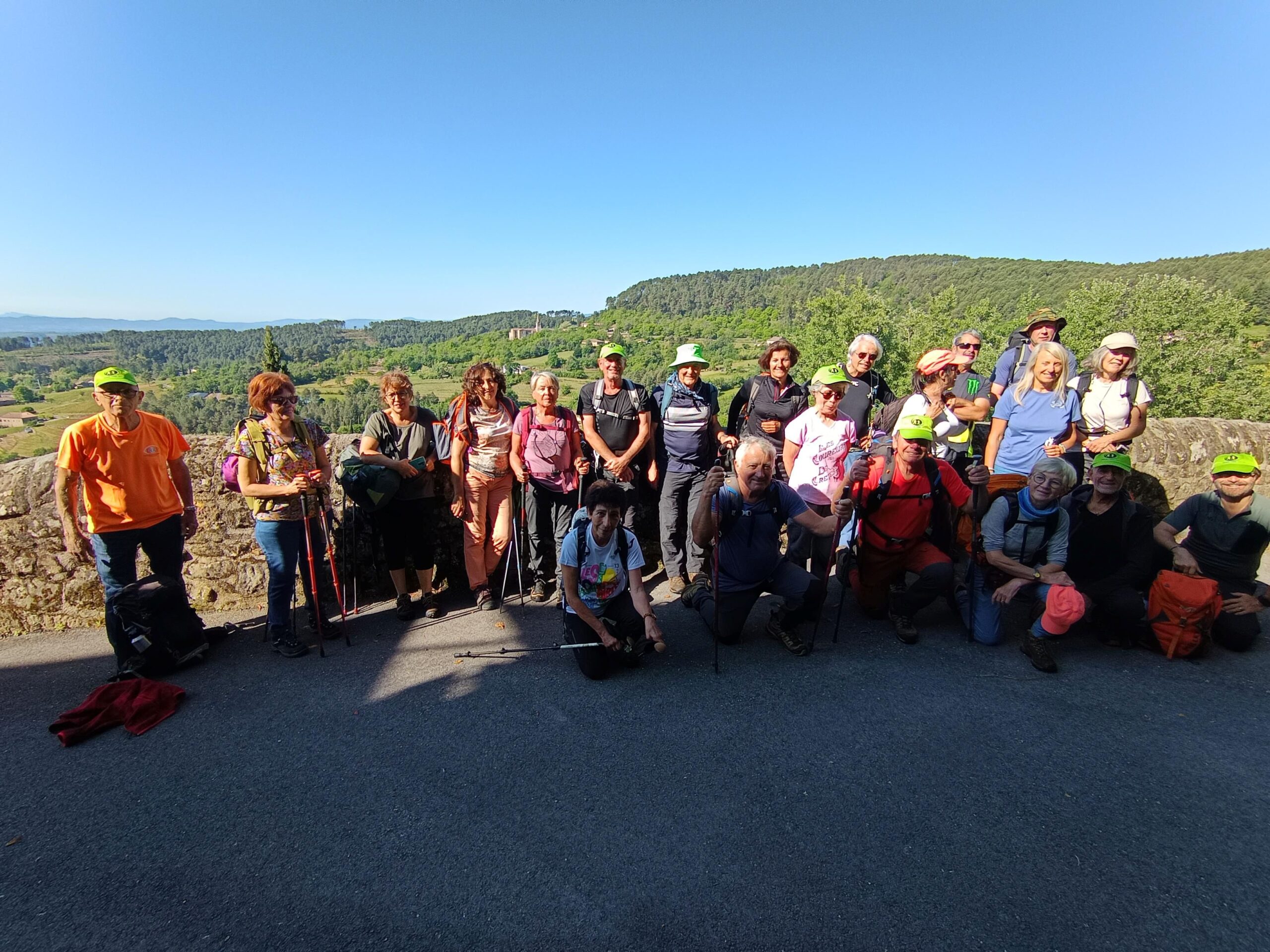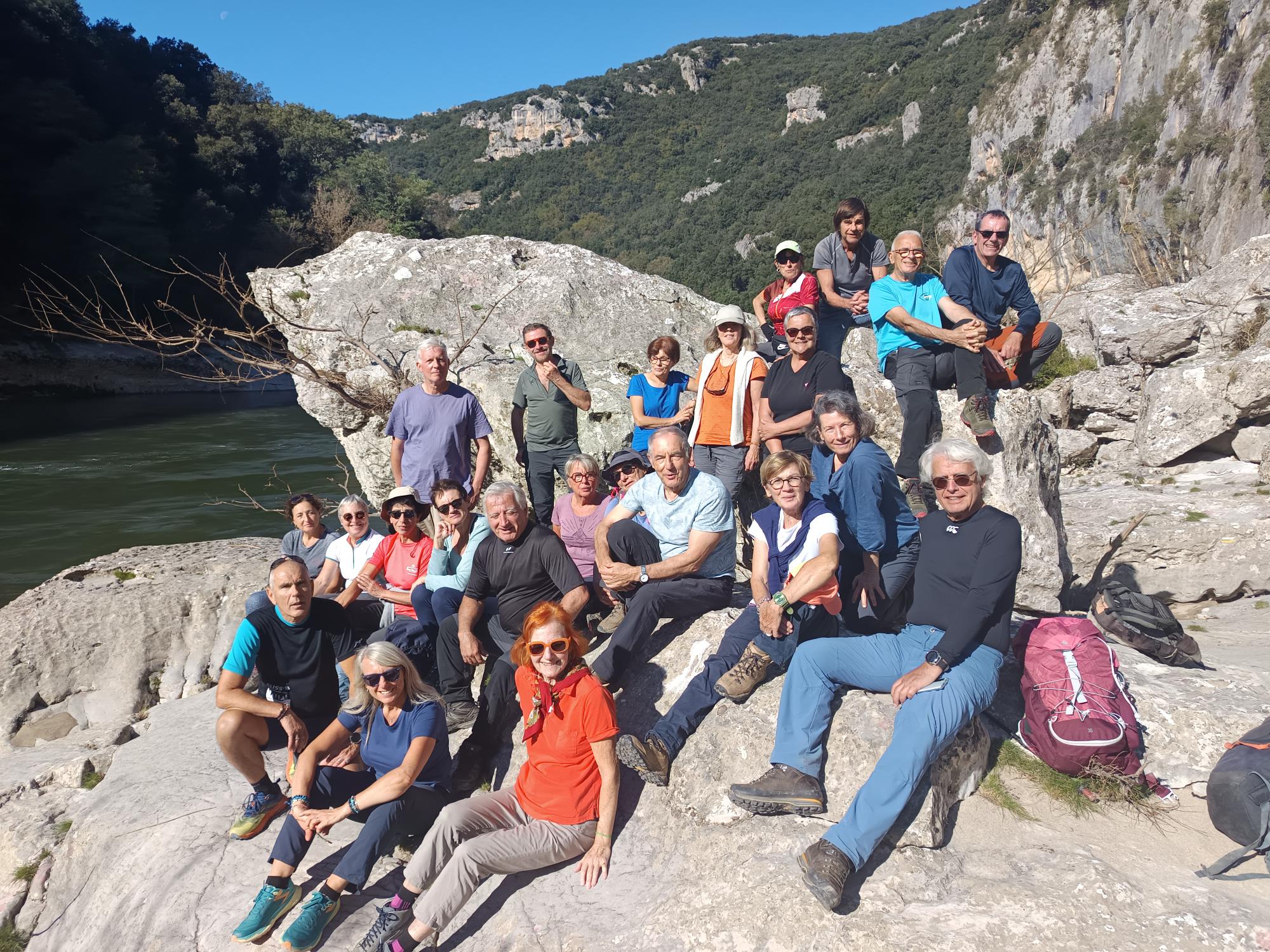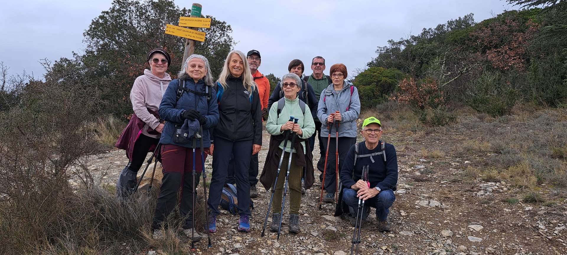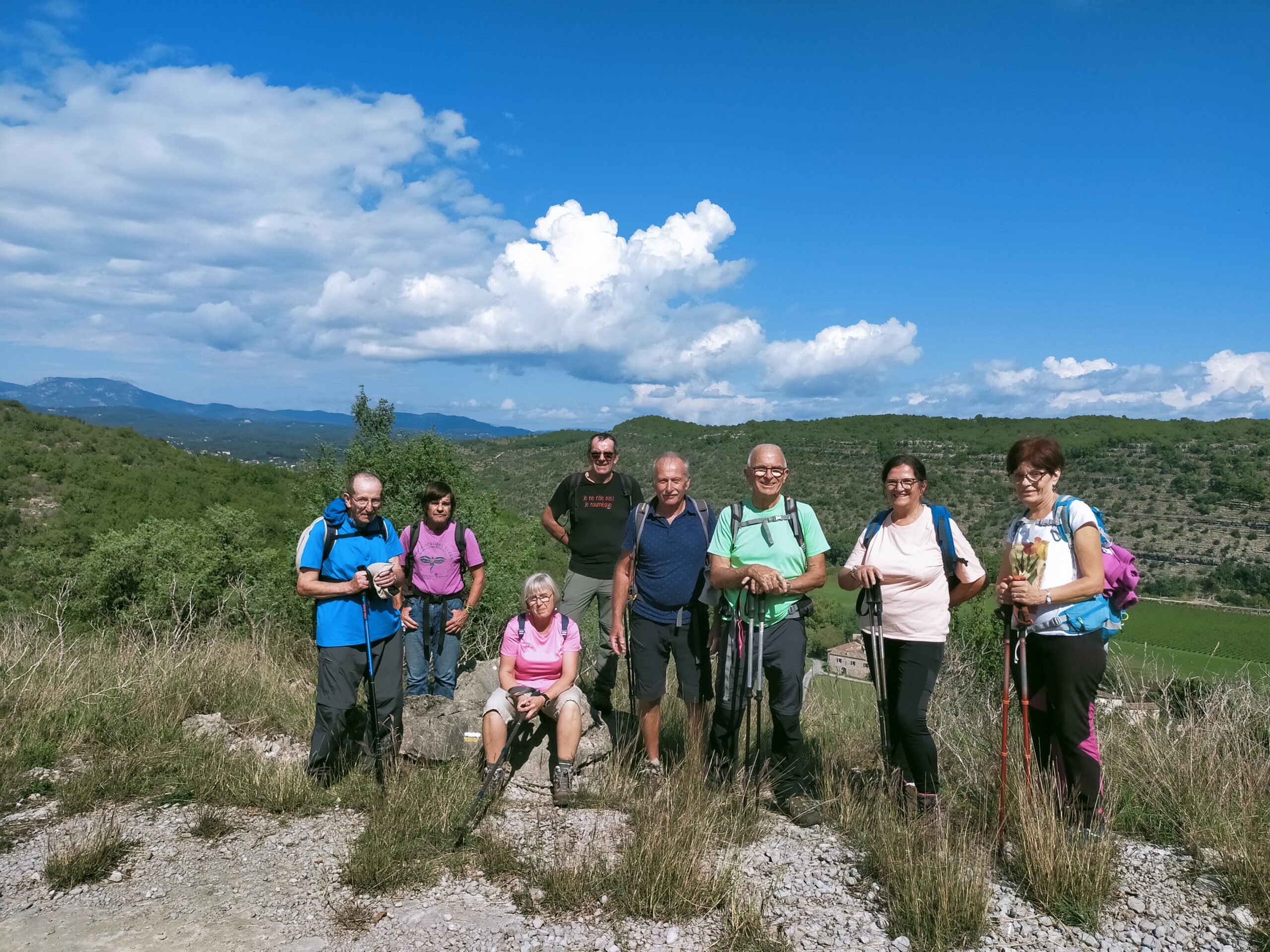 chauzon le 18/09/2024 23 participants ce jour, sous un soleil radieux, dans la bonne humeur. Belles vues sur le cirque de Gens, l’Ardèche et le Tanargue.