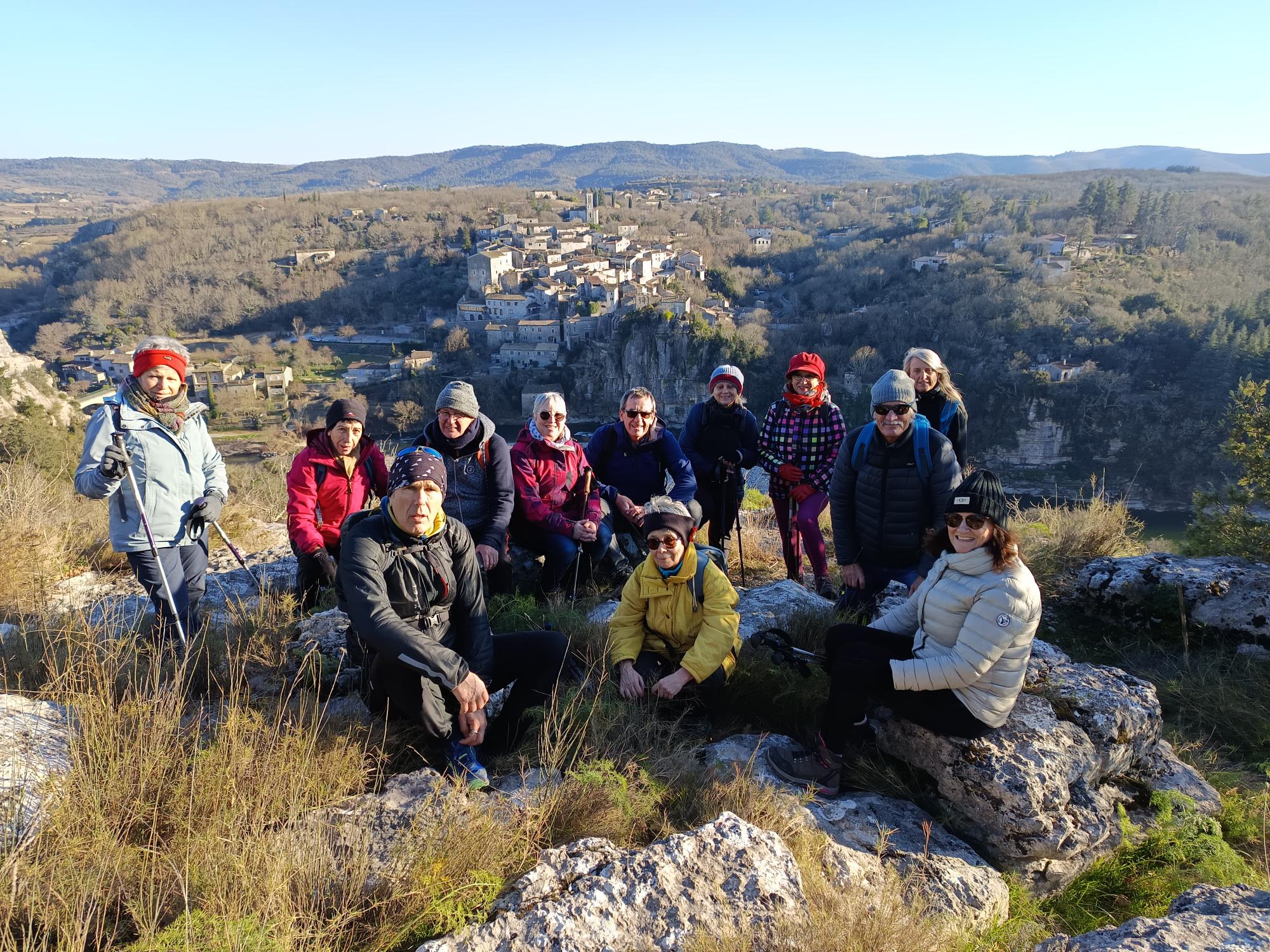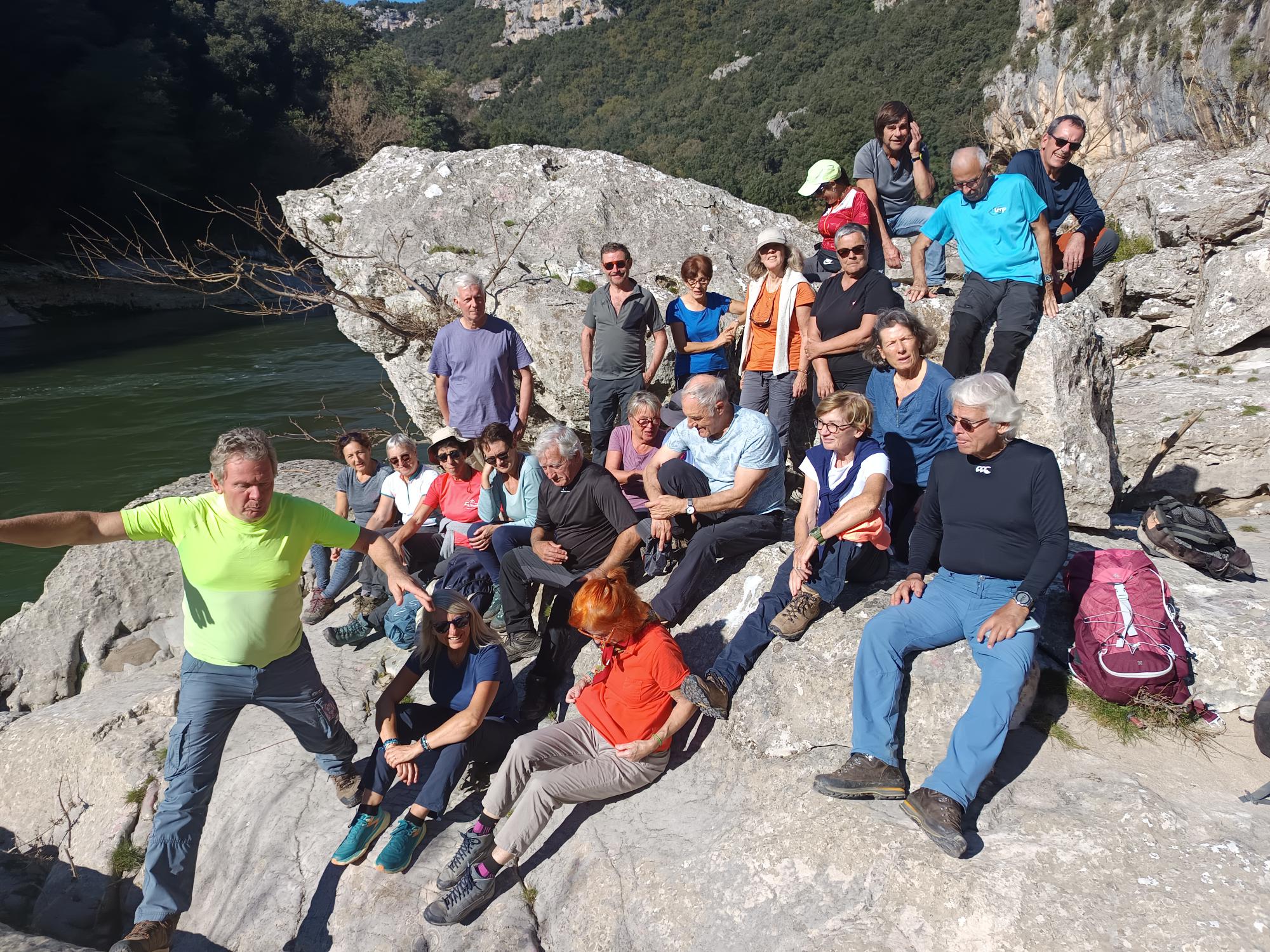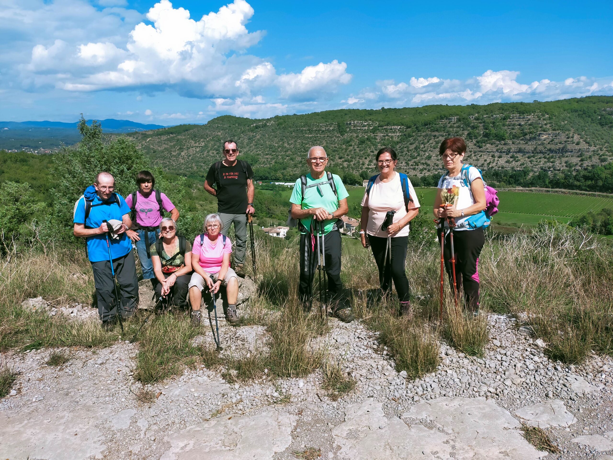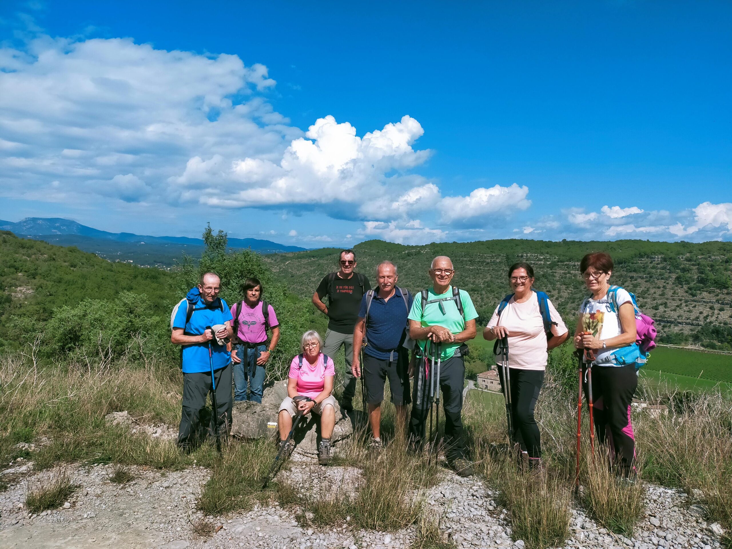 chauzon le 18/09/2024 23 participants ce jour, sous un soleil radieux, dans la bonne humeur. Belles vues sur le cirque de Gens, l’Ardèche et le Tanargue.