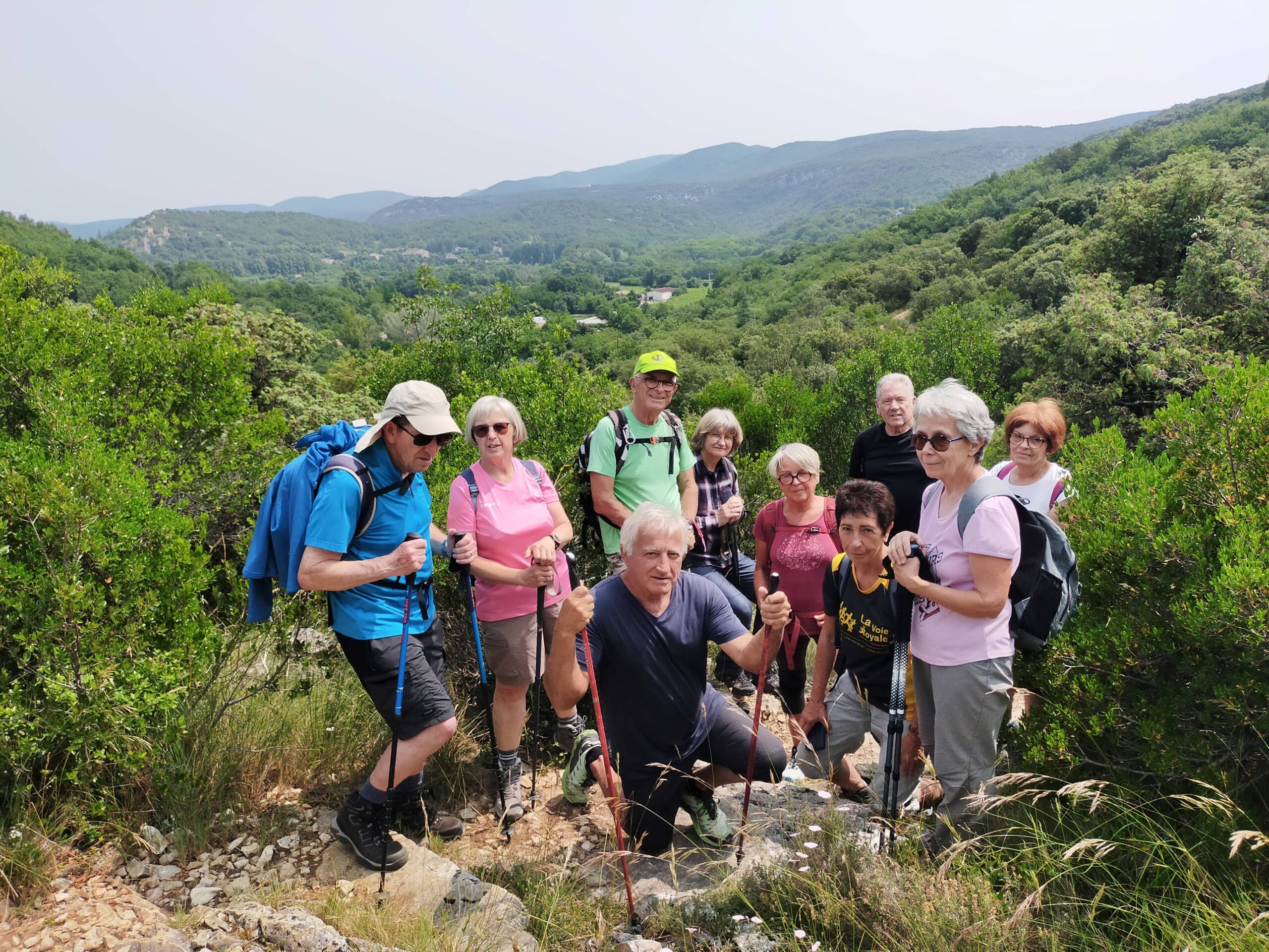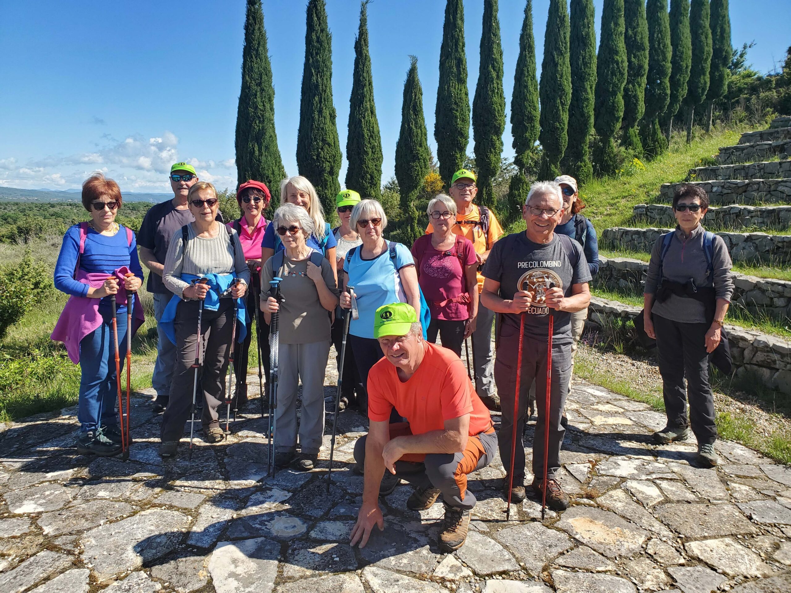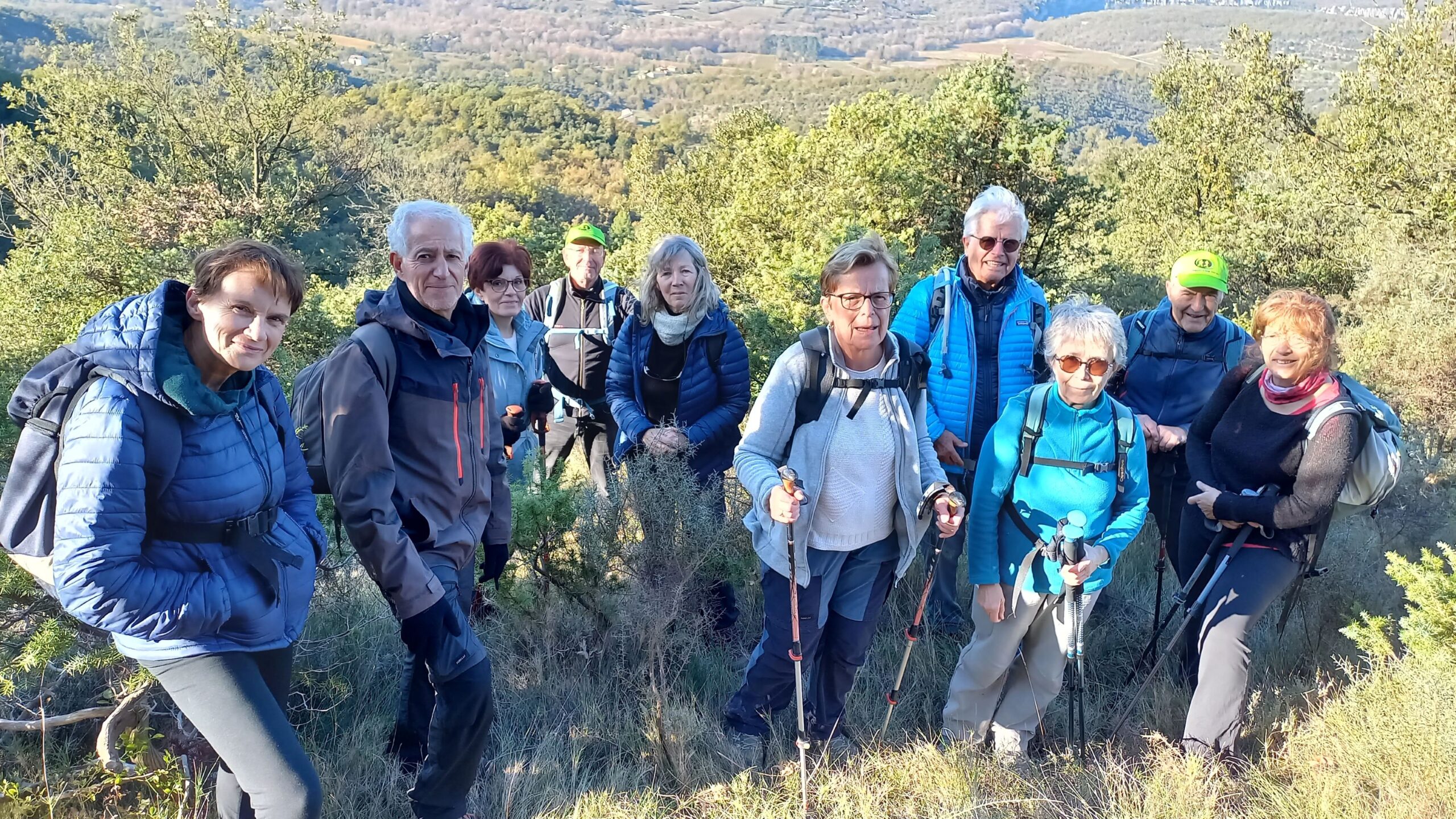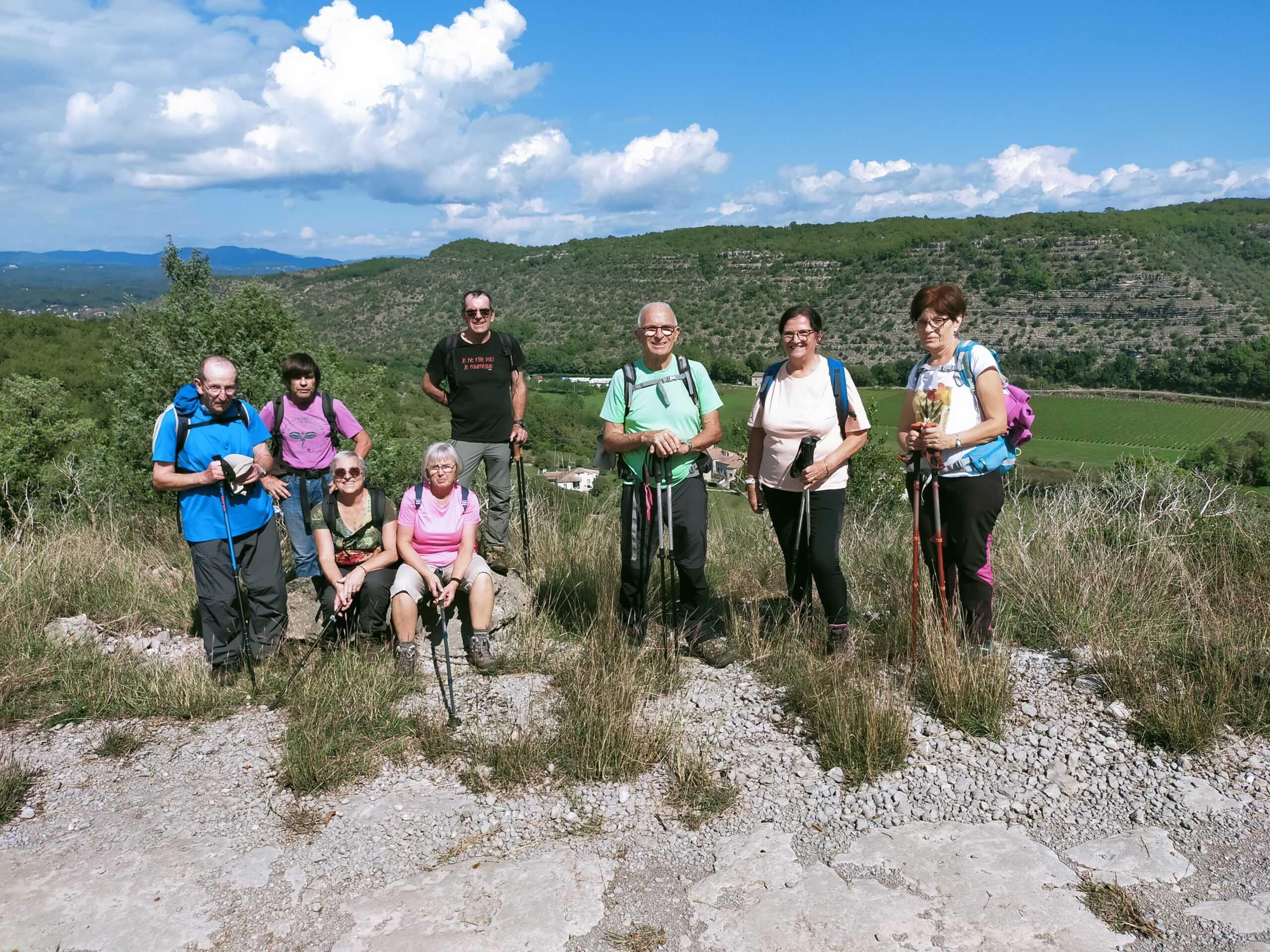 chauzon le 18/09/2024 23 participants ce jour, sous un soleil radieux, dans la bonne humeur. Belles vues sur le cirque de Gens, l’Ardèche et le Tanargue.