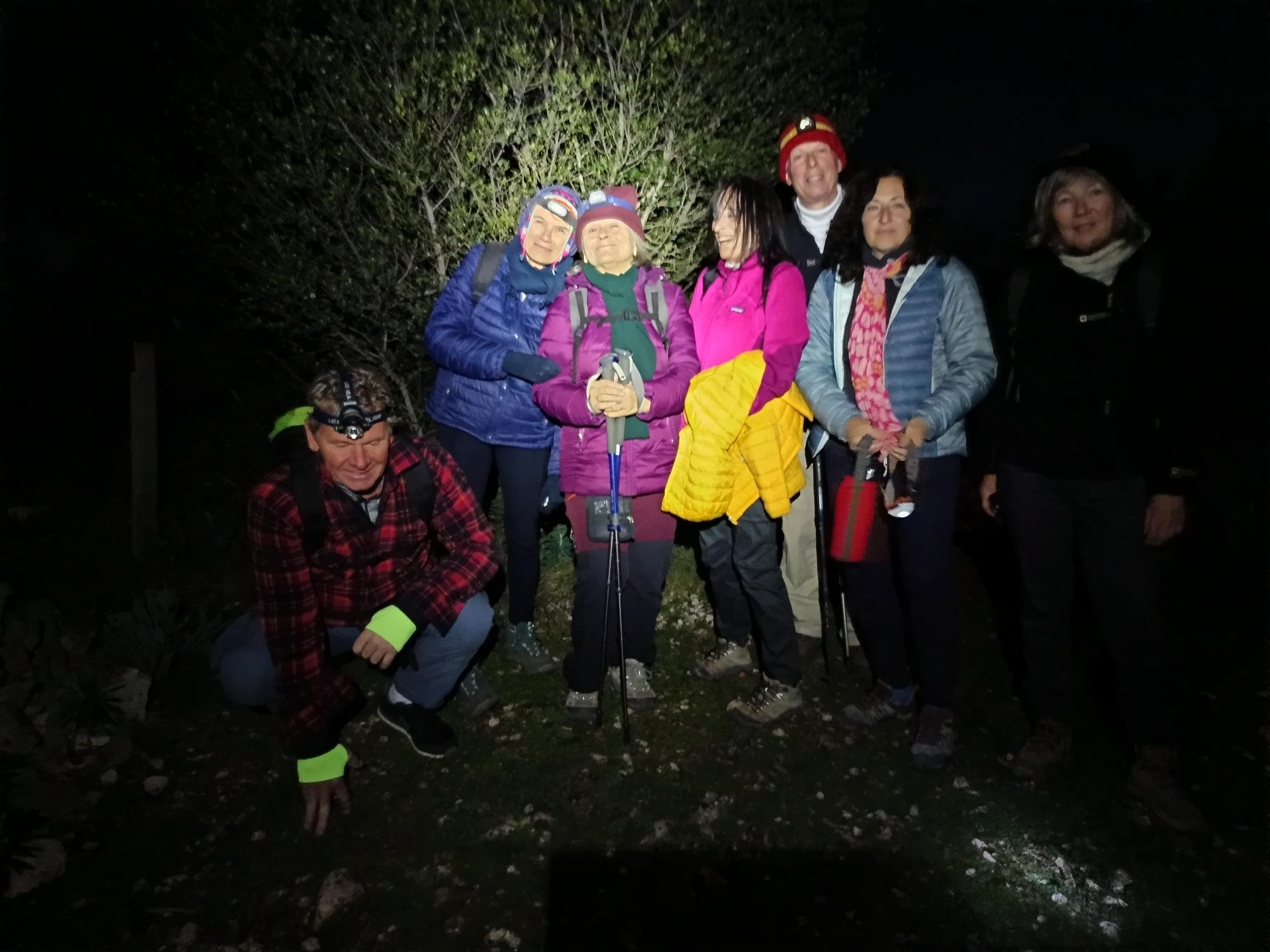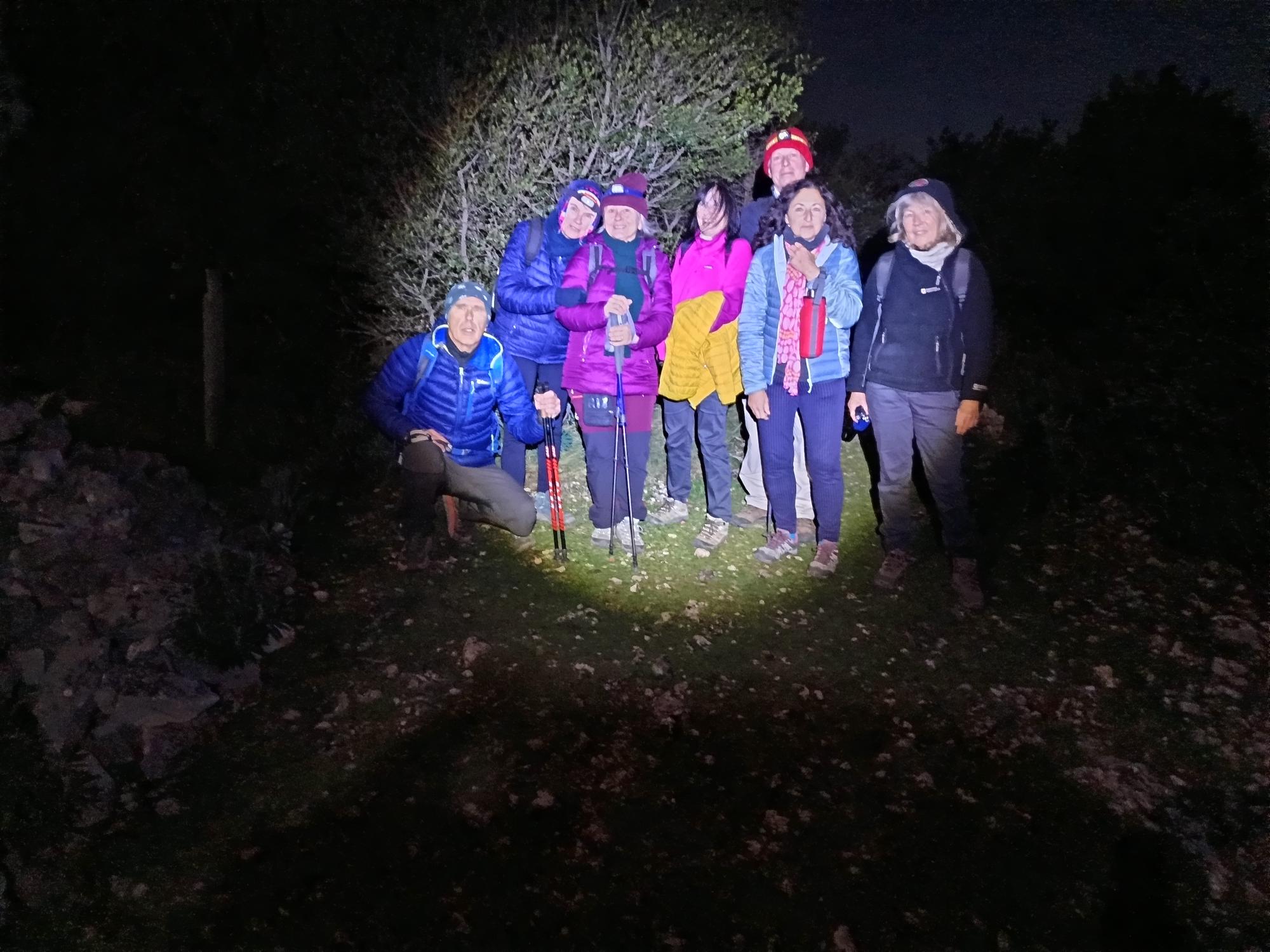 8 oiseaux de nuit pour une 1ère à la lueur des frontales. Des sensations différentes, un silence qui s’écoute, un ciel parsemé d’étoiles et Dame Lune qui ouvre le chemin.
